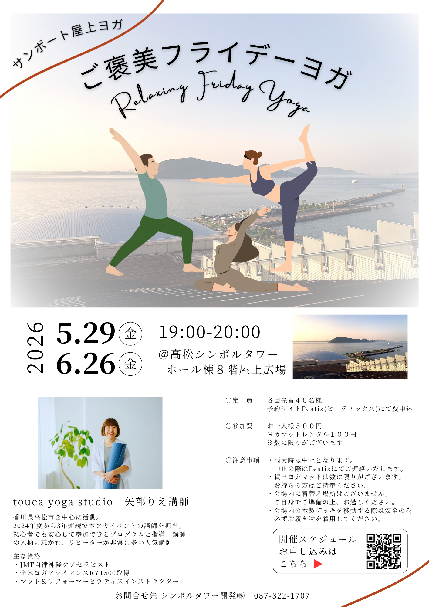 昨年度に引き続き、「サンポート屋上ヨガ」を実施いたします。